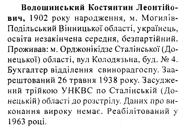 Трійкою УНКВД по Сталінській (Донецькій) обл.