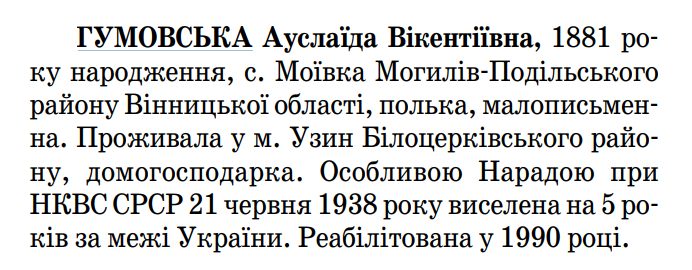Реабілітована: 1990 р. Реабілітовані історією