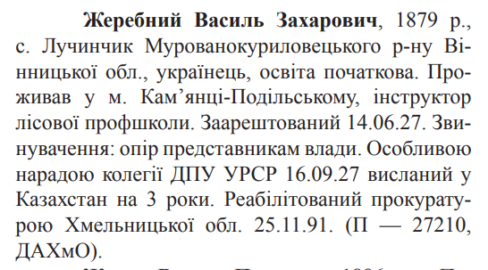 Реабілітований: прокуратурою Хмельницької обл. 25.11.1991 р. Реабілітовані історією