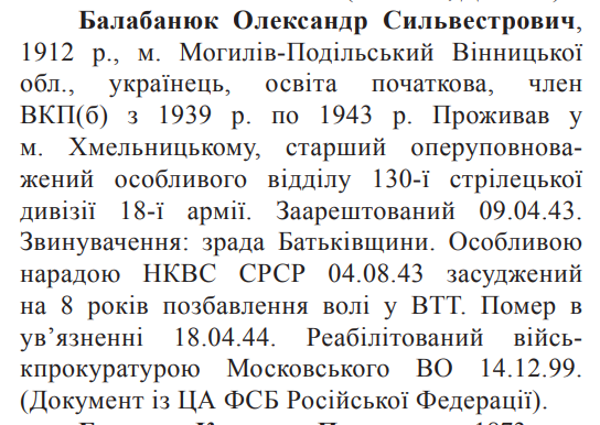 Реабілітований: ВП МВО 14.12.1999 р. Реабілітовані історією
