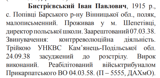 Соціальне походження: н/дОсвіта: малописьменнийПартійність: н/дПрофесія (місце роботи): директор польської школиСімейний стан: н/дЗаарештований: 07.03.1938Звинувачення: "контрреволюційна діяльність"Трійкою УНКВД по Кам'янець-Подільській обл. засуджений до розстрілуДата вироку: 24.09.1938Дата розстрілу і місце поховання невідомі.Реабілітований: ВТ ПрикВО 04.03.1958 р.