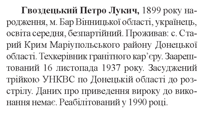 Трійкою УНКВД по Сталінській (Донецькій) обл.