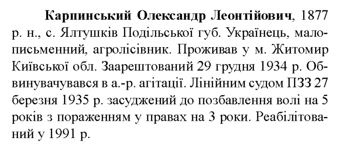 Реабілітований: 1991 р. Реабілітовані історією