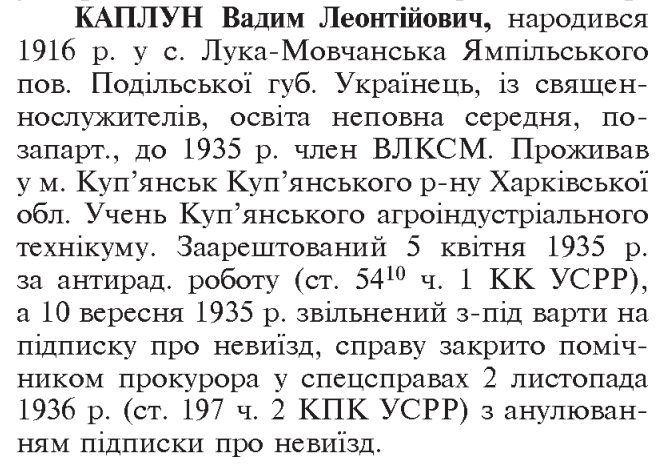 Реабілітований: справу закрито помічником прокурора у спецсправах 2.11.1936 р. з анулюванням підписки про невиїзд Реабілітовані історією