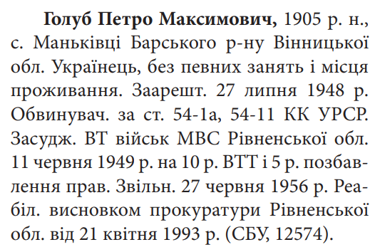 Реабілітований: прокуратурою Рівненської обл. 21.04.1993 р. Реабілітовані історією