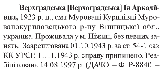 (Можливий варіант написання прізвища: Верхоградська) Реабілітовані історією